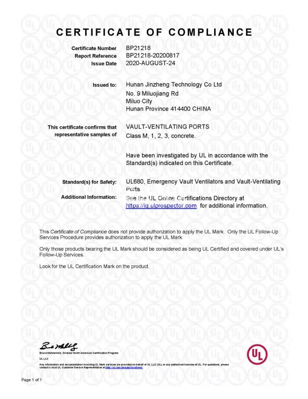 湖南水蜜桃在线播放科技有限公司生产的国产又色又爽又黄水蜜桃视频、金库壁板、金库通风口三款产品成功通过美国UL-608全系列认证(M级、1级、2级、3级)